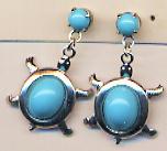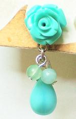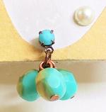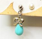 ムラの少ない綺麗な天然石ターコイズです。薄い水色ですのでつけやすいですし、他の石とも合わせやすいですよ。プレゼントにもおすすめ。軸が長めですので耳の厚い方でも安心です。 |