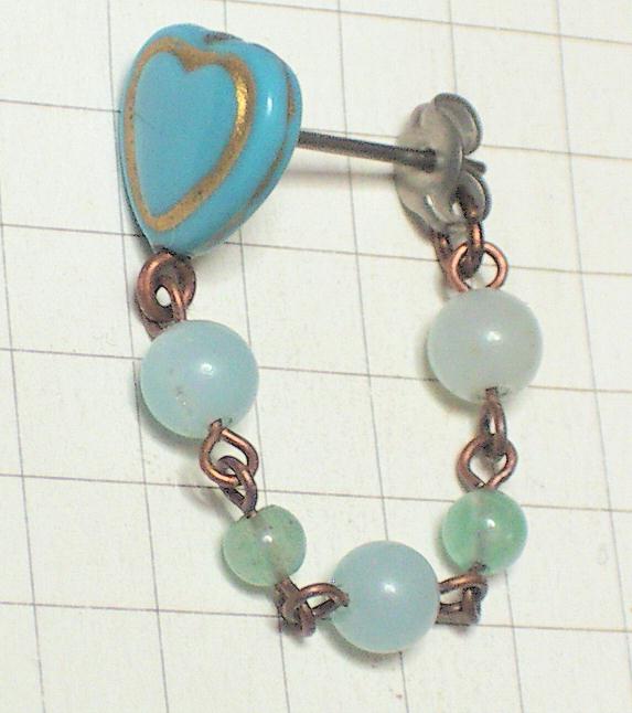 さらに詳しく&ご注文紹介ページへ「軸の長いチタンロングタイプ」のピアスです。 天然石シーブルーカルセドニーのピアスです。こちらはちょっとあまり見ないハート型。ぷっくりしたハートの形もかわいですね。海に行きたくなりそうな半透明の優しいうすブルーです。 オーシャンブルーのガラスの輝きと優しい自然な天然石の光がお互い引き立てあっていい感じになってますよ。石はややムラがあり高級品ではございませんがわりと綺麗ですよ。青い海のように心のなかの不安や葛藤をやわらげる効果があるそうです。(効用は人それぞれです。全く効かない人もいるかもしれません笑) 樹脂ピアスやイヤリング(ノンホールピアス)、セラミック軸のタイプもご用意できます(このピアスでもこれが可能になったのご紹介させていただきました。) 軸がセラミックや樹脂のタイプもございますが、その場合軸はロングタイプにはなりませんのでご注意ください。 |