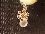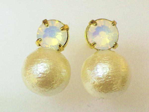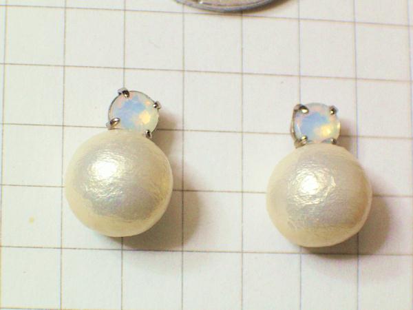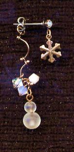 さらに詳しく&ご注文ページへピアスの頭には、冬にピッタリな半透明の白いガラスがついています。小さい茶色の4本爪でとまっていてかわいいですよ。そして耳たぶの後ろでは、くもりガラス風の天然石水晶で出来た白い雪ダルマが、くねくねのチェーンでくるくる揺れています(笑) 雪ダルマの上には白い雪がキラキラ光ながら降っているように見えるガラスがついています。このピアスがあれば暖かいお部屋のなかででも冬を満喫できますよ(笑) ¥1500- |