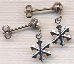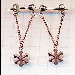 軸の長さ11ミリ、有効軸長8ミリ軸はチタンです。チタン軸とお皿部分にはメッキがかかっておりません。ファーストピアスのロングタイプとほぼ同じサイズですので耳が厚い方にもおすすめします。当店の定番商品の雪の結晶デザインです。キラキラしたラインストーンのついた金具にぶら下がっています。 軸がセラミックや樹脂のタイプもございますが、その場合軸はロングタイプにはなりませんのでご注意ください。 |