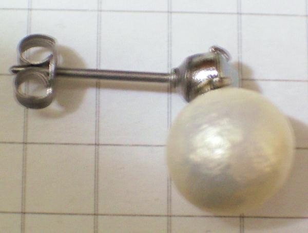さらに詳しく&ご注文紹介ページへ軸の長さ11ミリ、有効軸長8ミリ軸はチタンです。チタン軸とお皿部分にはメッキがかかっておりません。ファーストピアスのロングタイプとほぼ同じサイズですので耳が厚い方にもおすすめします。 大粒のなみだの雫のパールピアスです。パールは樹脂製です。ピアスの軸が雫の上のほうについていますので、耳たぶから雫がこぼれ落ちそうなデザインとなっています。色も自然な感じのクリーム色でいい雰囲気です。こんなに大きなしずくのパールのピアスは探しても滅多にないと思います。この機会にどうぞ(笑) 軸がセラミックや樹脂のタイプもございますが、その場合軸はロングタイプにはなりませんのでご注意ください。 |