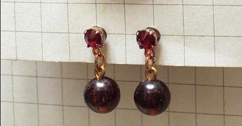 さらに詳しく&ご注文ページへ「軸の長いチタンロングタイプ」のピアスです。 見た目は黒っぽいですが、光りにかざすと赤く光る神秘的な天然石ガーネットのピアスです こちらのピアスは天然石とおそろいのお色のガラスをピアスの頭につけています。ルビーのように輝く赤い石とガーネット天然石の光がお互い引き立てあっていい感じになってますよ。絆を強めて愛を持続させる効果があるそうですよ。大切な人とガーネットをお揃いで身につけましょう(笑) ¥1,000 |