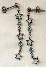 さらに詳しく&ご注文紹介ページへ軸の長さ11ミリ、有効軸長8ミリ軸はチタンです。チタン軸とお皿部分にはメッキがかかっておりません。ファーストピアスのロングタイプとほぼ同じサイズですので耳が厚い方にもおすすめします。 軸がセラミックや樹脂のタイプもございますが、その場合軸はロングタイプにはなりませんのでご注意ください。 軽快な雰囲気のくりぬきのお星さまと、キラキラのクリスタルガラスが 交互につながってます。くりぬきのお星様ですのでとても軽くて、揺れながらキラキラ光って綺麗ですよ。 |