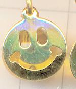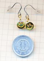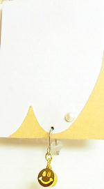 いつも笑顔になれそうなスマイルピアスです。金色のスマイルの顔の下には、黄色い天然石のシトリンが一緒に揺れていますので、スマイルの目や笑った口元から、黄色い輝きが見えるデザインになっています。スマイル君の笑顔が輝いているように見えますよ(笑)