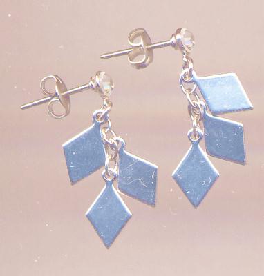 メタルのひし形がシャラシャラ揺れるピアスです。ピアスの頭にはキラキラ透明なガラスがついています。手に持ってゆらして見てると目が痛くなります(笑)季節を問わずつけやすいピアスです。