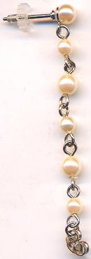 耳の前後にパールチェーンがさがった感じのパールスタッドピアスです。耳たぶがネックレスをしているように見えます(笑)パールがゆれるたびにコロコロ春らしくていいですね。控えめなパールのお色でつけやすいピアスです。おすすめ。