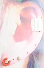 耳のイラストの上につけてみました。大きさの参考にしてみてください。ちょっと福耳ですね(笑)いっしょについているパールは大きさ4ミリです。