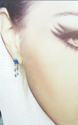 耳のイラストの上につけてみました。大きさの参考にしてみてください。ちょっと福耳ですね(笑)