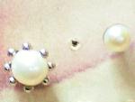 ピアス軸の頭についた石は淡水パールです(大きさ5ミリくらい)。そこがやや平らになっており、おもちみたいでかわいいです(笑)