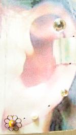 耳のイラストの上につけてみました。一緒についているパールは大きさ4ミリです。大きさの参考にしてみてください。ちょっと福耳ですね(笑)