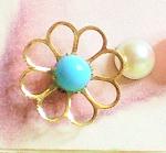 天然石ターコイズを抱いたお花のピアスです。かわいらしいお花の真ん中に天然石ターコイズがちょこんと乗っています。天然石1粒だけのピアスよりもちょっと華やかですし、季節感が漂うピアスです。お花部分が茶色や黒ですとのでやや落ち着いた印象ですし、金色や銀色でもご用意できます。透かしのデザインですので軽くてつけやすいですよ。片耳に2つつけてもかわいいですよ。