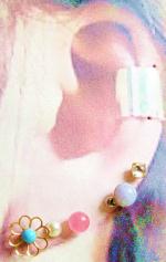 メッキ部分を耳から浮かせて金属アレルギー対策をしています。