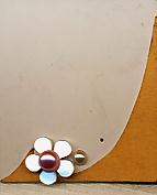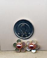 白いお花は貝で出来ています。おはなの真ん中のさくら色の石は樹脂製パールで大きさ6ミリくらいです。パールの色はうすピンクです。