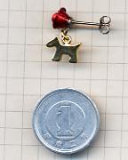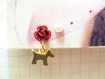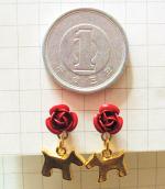ころんとしたかわいいわんこモチーフのピアスです。まるでわんこがバラをプレゼントしてくれたかのような赤バラとのセットのデザイン。かなりかわいいと思います。ちょっと気取ったわんこピアスですね(笑)