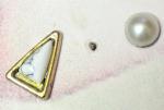 アンティークな枠の中に樹脂製のホワイトハウライトが乗っているデザインです。樹脂製ですが見た目は本物のホワイトハウライトに見えます(笑)さんかくの形をしていますので、縦長につけたりナナメにつけたり、横長につけたりと色々なつけ方でお楽しみいただけますよ。