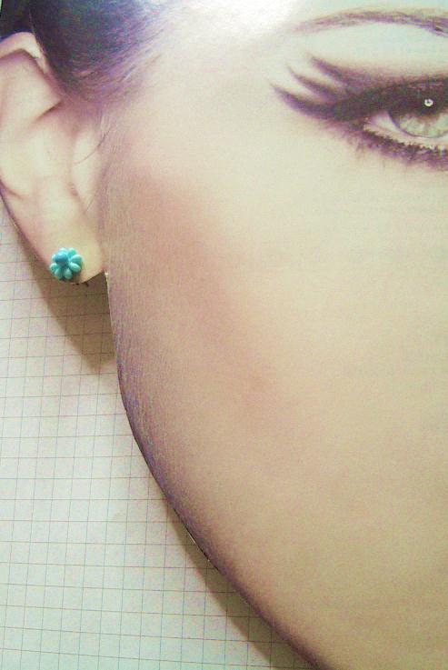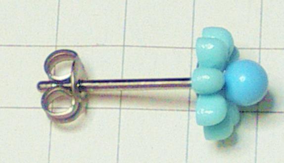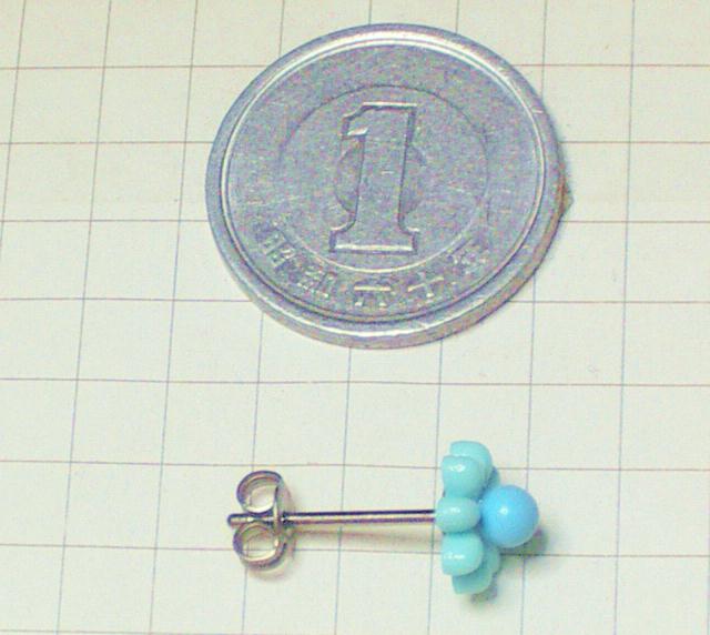 です。春の訪れを告げてくれそうなかわいいターコイズのお花。花びら部分のお花の真ん中でターコイズ色の色合いを変えています。かなりかわいいですよ。春を先取りしませんか(笑)ピッタリつけていただけるので使いやすいですよ。