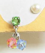 ピアスの頭には若葉のようなうすグリーンのガラスがついています。こちらはカット少な目の優しく光るガラスで、よくあるラインストーンやキュービックジルコニアなどよりも光り方が優しく瑞々しい感じです。春が待ち遠しくなりそうなピアスです(笑)