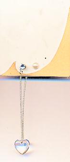 氷のような透明クリスタルガラスハートのロングチェーンピアス(チタンスタッドロング)