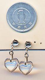 ハートとお揃いのピアスの軸の頭についた丸い透明な石(大きさ4ミリ)もクリスタルガラスでございます。