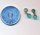 石は天然石シーブルーカルセドニーです。透明感のある澄んだ水色で、大きさは4ミリくらいです。ピアスの頭についている小さな石はクリスタルガラスで大きさが3ミリです。 。