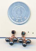 ヘマタイト石のチタンロングピアスです。小さな石が仲良く3個ついています。血のめぐりが良くなるために頭がさえ調子がよくなります。肩こりに効くそうですよ。効果は人それぞれです。全く効かない人もいるかもしれません(笑)