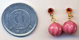 サーモンピンク色のかぼちゃは天然石ロードナイトです。大きさは8ミリくらいです(やや大粒)ピアスの頭についている小さな石はオレンジ色のクリスタルガラスです