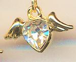 ハートのラインストーンに羽根が生えて、あなたの耳元にやってきましたよ(笑)かわいいハートエンジェルがラインストーンチェーンの下で揺れています。夏の日差しでキラキラ光り綺麗ですよ。