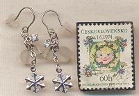 切手の大きさは3cm×2.2cmです(日本の切手と同じ大きさ) 雪の結晶ピアスです。冬色天然水晶との相性抜群ですね。小さいラインストーンが1石ついていい感じにアクセントになっています。