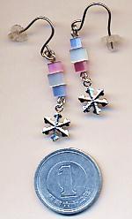 雪の結晶キューブアイスの揺れるチタン金具のピアス