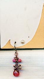 | 石やガラスなどの素材 | 赤ワイン色の涙のしずくはガラス製です。2個の丸い石は天然石ロードナイトです。大きさ4ミリです。 |