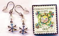 雪の結晶にガラスがついたタイプです。リアルな雪の結晶の上でガラスがキラキラ光りましていい雰囲気ですね。ガラスのお色変更サービスでお好みのお色に変更できます。