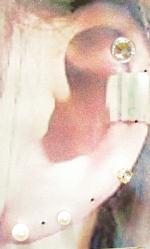 G型スタッドタイプです。樹脂の中にキラキラを埋めこんでありラメのように光ります。適度に大きさがありつけやすいです。