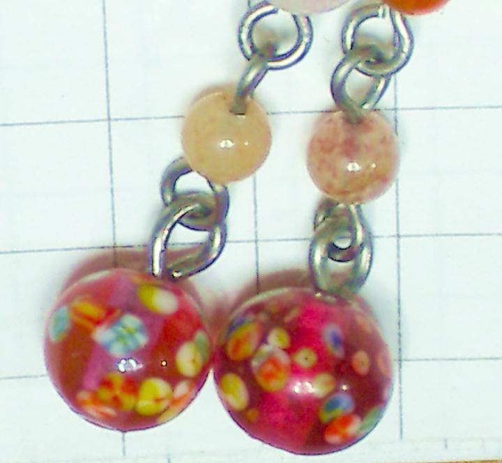 着物や浴衣にピッタリな振り袖花模様ガラス玉が天然石チェーンで揺れるデザインです。昭和っぽいデザインのこのガラス玉は国産でメーカー生産が減って貴重になっています。3ミリ玉の天然石チェーンが華奢でかわいいですよ。よく見ると淡いピンクのローズクォーツだけ大きさ4ミリでアクセントになっています☆