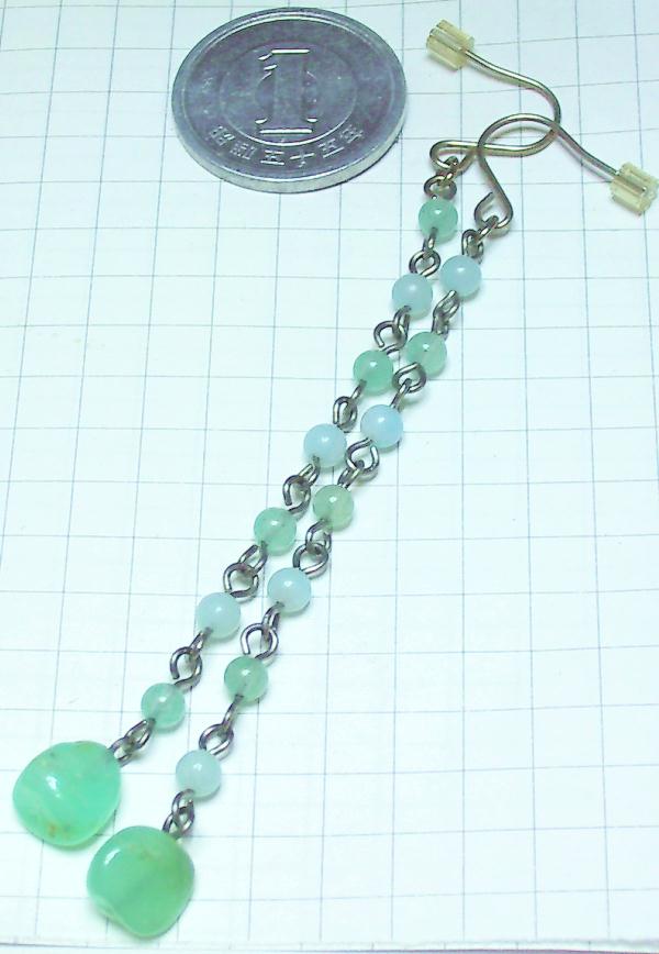 天然石チェーンで揺れるクリソプレースのオールチタンピアス(金属部分が全部純チタン製)