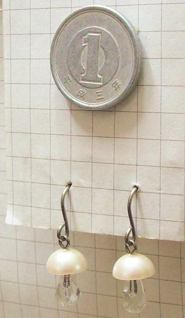 きのこパールのオールチタンピアス(金属部分が全部純チタン製)