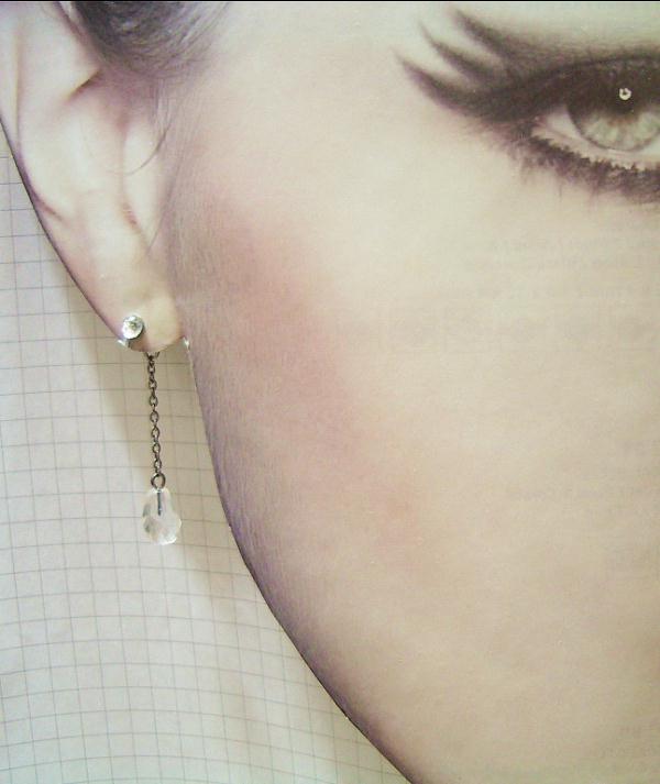 ホーム / 軸太ロング純チタンセカンドピアス / ガラスのしずくのバックピアスのついた涙目クリスタルガラスの軸太ロング純チタンセカンドピアス(オールチタン)