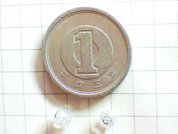1円玉の大きさは2cmです。方眼の1マスは5ミリです。軸長めで余裕がありますので耳が厚い方でもつけやすいですよ。ピアス軸が短くてお困りの方にもおすすめです。スマホの上に1円玉の載せて同じ大きさになるよう拡大していただくと実寸大になります☆