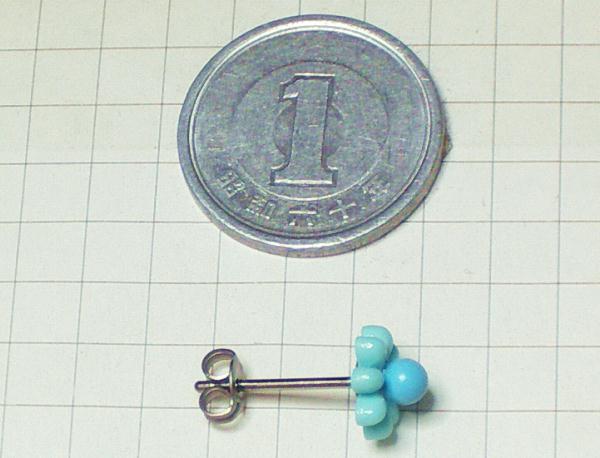 お花の真ん中につく石は天然石ターコイズです。色はうすブルーです。大きさは3ミリくらいです。