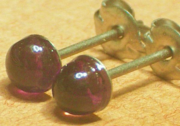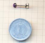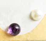 石は天然石アメジストです。大きさは4ミリでございます。半円タイプ(玉を半分に切った形)です。石の色は濃淡のあるむらさきでございます。