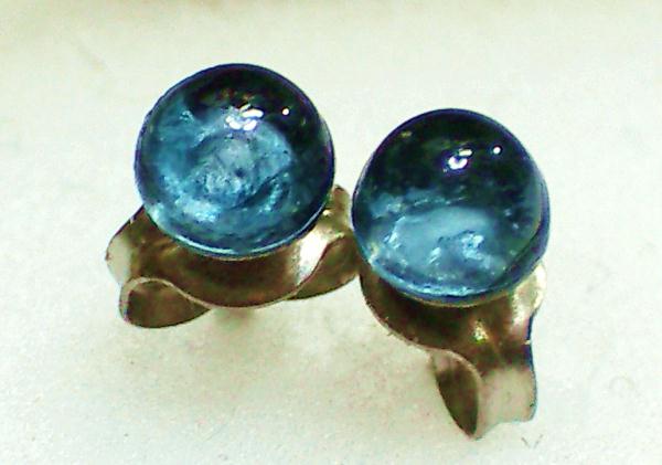 石は天然石ダークブルートパーズです。大きさは4ミリでございます。半円タイプ(玉を半分に切った形)です。石の色は薄ブルーです。