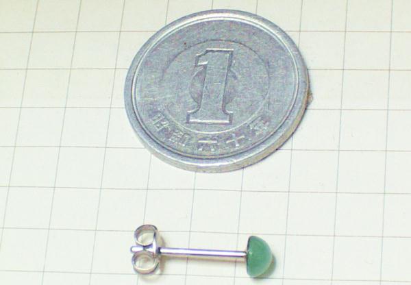 石は天然石グリーンアベンチュリンです。大きさは4ミリでございます。半円タイプ(玉を半分に切った形)です。石の色はモスグリーンでございます。