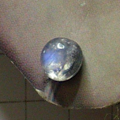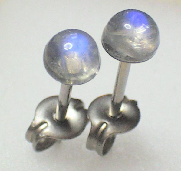 石は天然石ラブラドライトです。大きさは4ミリでございます。半円タイプ(玉を半分に切った形)です。石の色はうすグレーです。見る向きによって青白い光を発します。