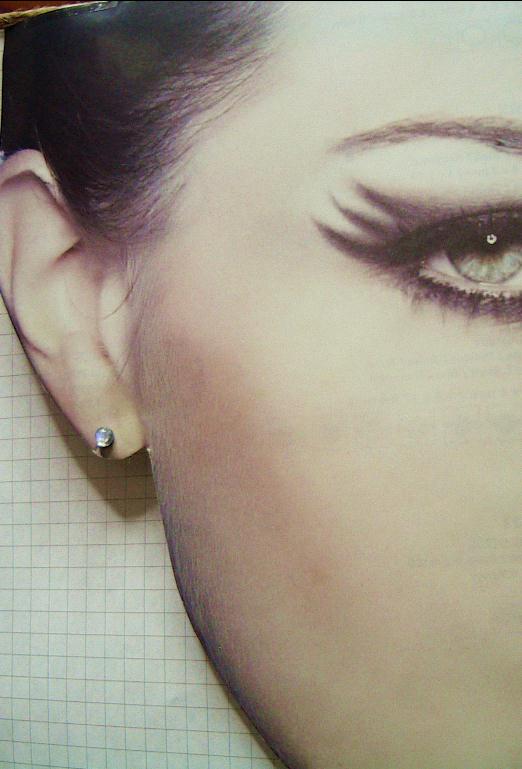 耳のイラストの上につけてみました。大きさの参考にしてみてください。ちょっと福耳ですね(笑)
