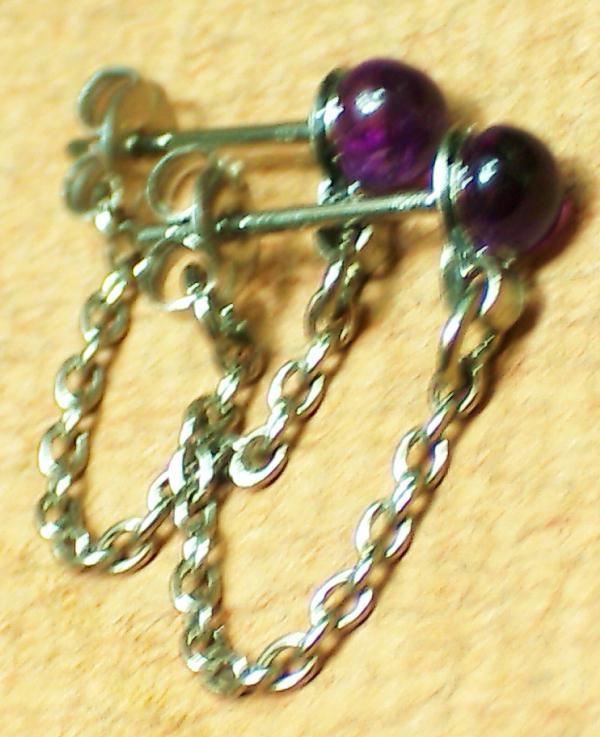 石がのっている台座や揺れるチェーン部分含め金属部分全体が純チタンです。耳が厚くてスタッドタイプをあきらめていた方にもおすすめです。ピアスの頭の天然石の大きさは4ミリです。