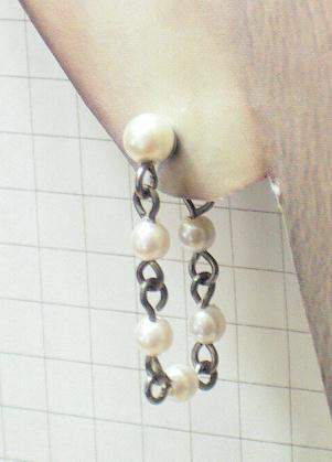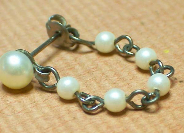ホーム / 軸太ロング純チタンセカンドピアス / パールチェーンのついた軸太ロングオールチタンセカンドピアス◆太さ19G16G14G選べます