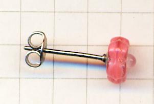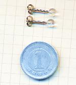 一般的なセカンドピアスの太さです。アクセサリーピアス(太さ0.6~0.7ミリ)よりも太めです。ピアスホールが十分安定してから、ピアスをつける/外すの練習用に使いましょう。