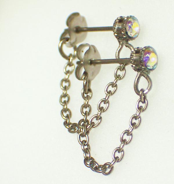 ピアス全体が純チタン製ですのでお肌に優しく、チタンの軸のピアスが大丈夫な方でしたら、チェーン部分が耳やお肌に触れても違和感なくお使いいただけると思います。 |