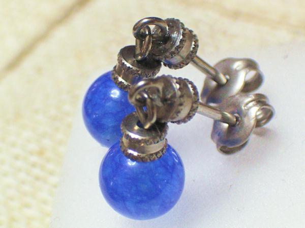 アンティーク天然石ブルーめのう(瑪瑙)が揺れる軸太ロング純チタンセカンドピアス