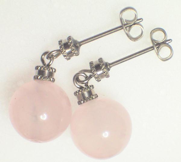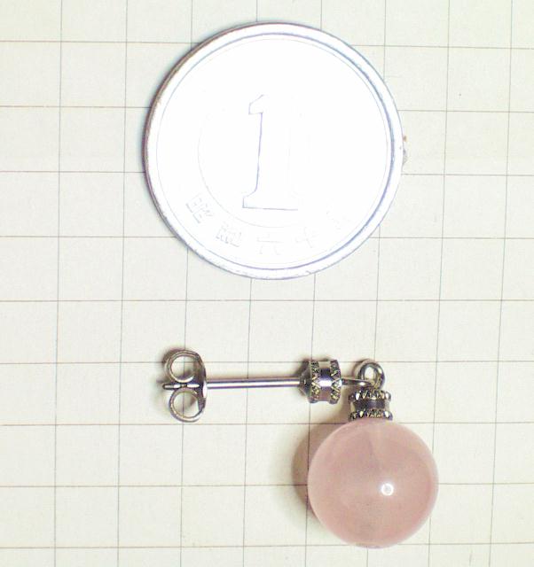 アンティーク天然石ローズクォーツ(瑪瑙)が揺れる軸太ロング純チタンセカンドピアス