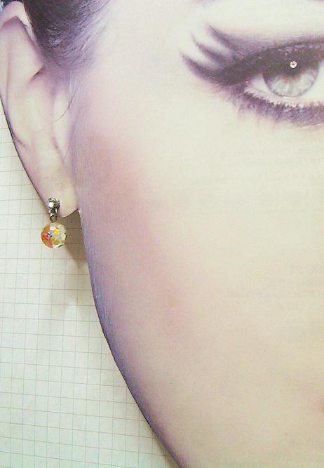 拡大しました。ピアス軸や後ろのピアスキャッチ、石を留める丸枠、丸枠の下についているわっか、わっかの下で揺れる部分の金属など金属すべて純チタン製(ピュアチタン)です。チタン以外の金属(メッキや溶接用のロウやハンダなど)は一切使っておりません。 |